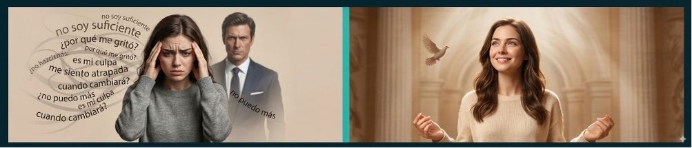 Imagina a dos mujeres enfrentando las mismas dificultades en su relación: desprecios, manipulación afectiva, celos y el agotamiento de darlo todo sin recibir nada. Ambas tienen el mismo valor y el mismo potencial… Pero una de ellas vive con claridad, toma decisiones firmes y deja de ser la víctima de la historia.